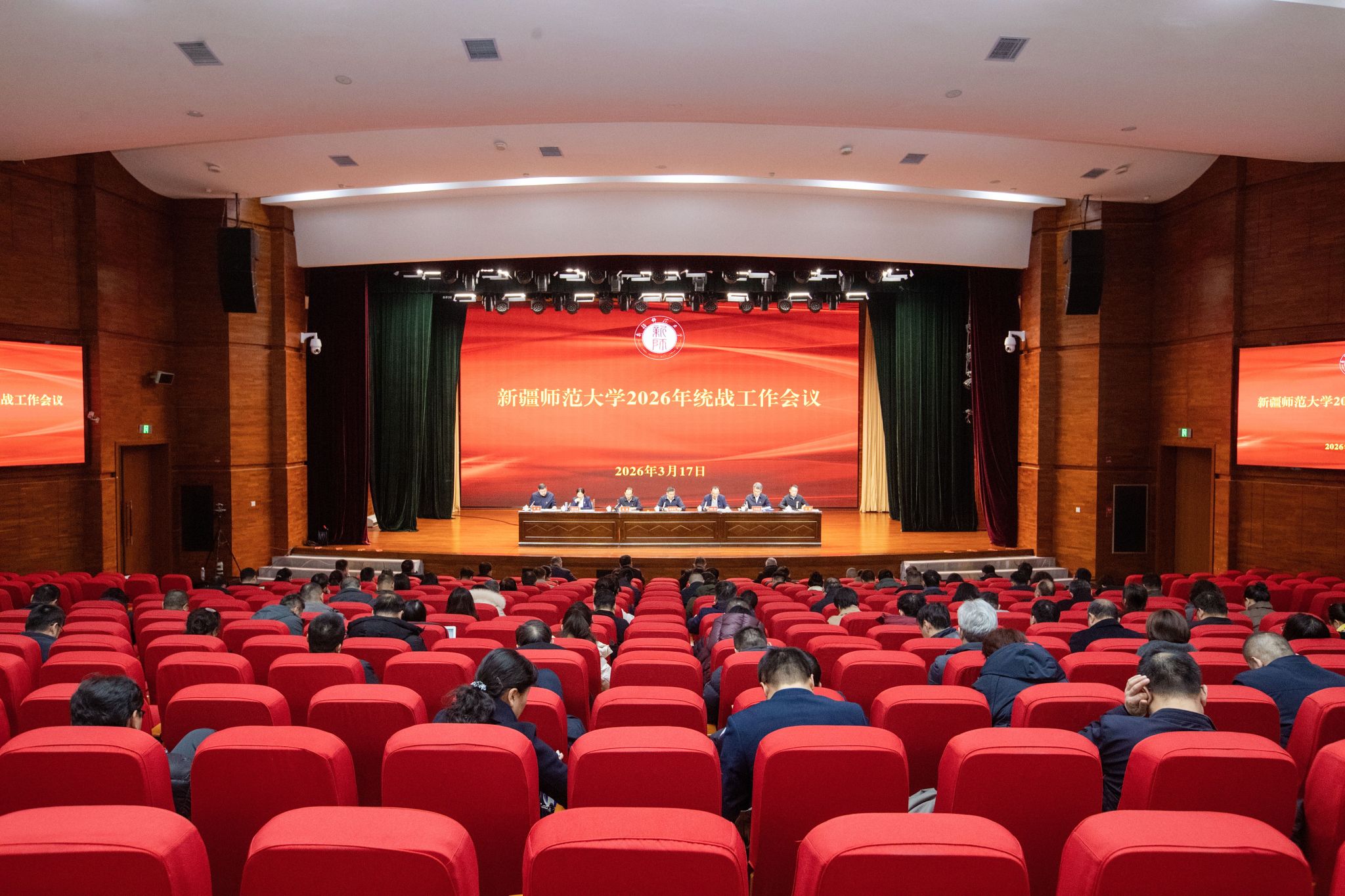 3月17日,新疆师范大学2026年统战工作会议在温泉校区昆仑讲堂召开。校党委书记蒋海军出席会议并讲话。全体在家校领导出席会议,会议由校党委副书记、校长艾尼娃尔・艾克木主持。会议现场会上,艾尼娃尔・艾克木领学了自治区党委书记陈小江在自治区统战部长会议上的讲话。校党委副书记刘俊传达了《新疆师范大学2026年统一战线工作清单》。校党委常委、宣传部部长多强传达了《中共新疆师范大学委员会青少年“筑基”工程实施方案》。蒋海军在讲话中指出,...